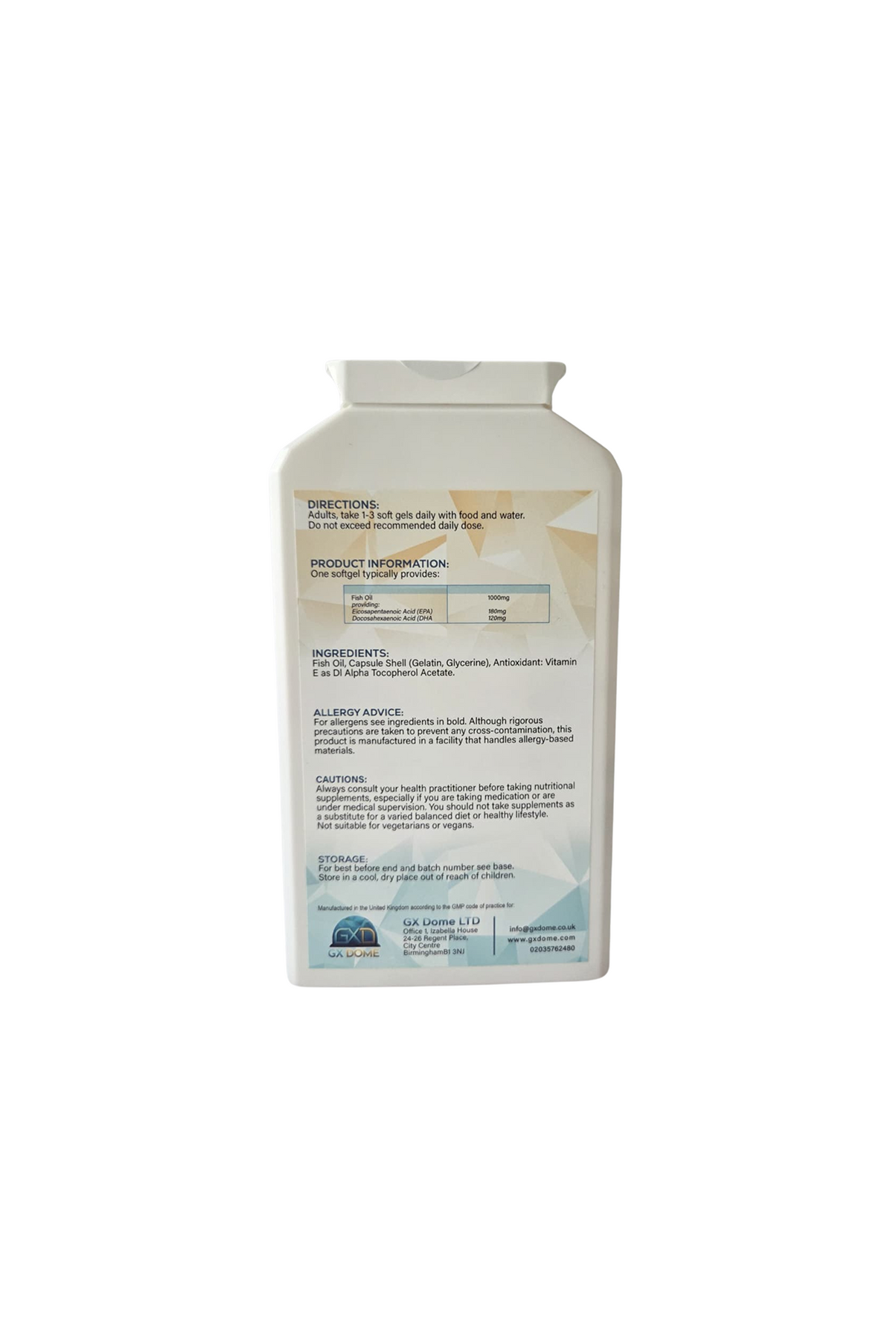 Each GX Dome softgel delivers 1000mg of pure fish oil, including 180mg EPA and 120mg DHA β the essential omega-3 fatty acids your body needs daily. Perfect for supporting cognitive performance, cardiovascular health, and vision in adults.
